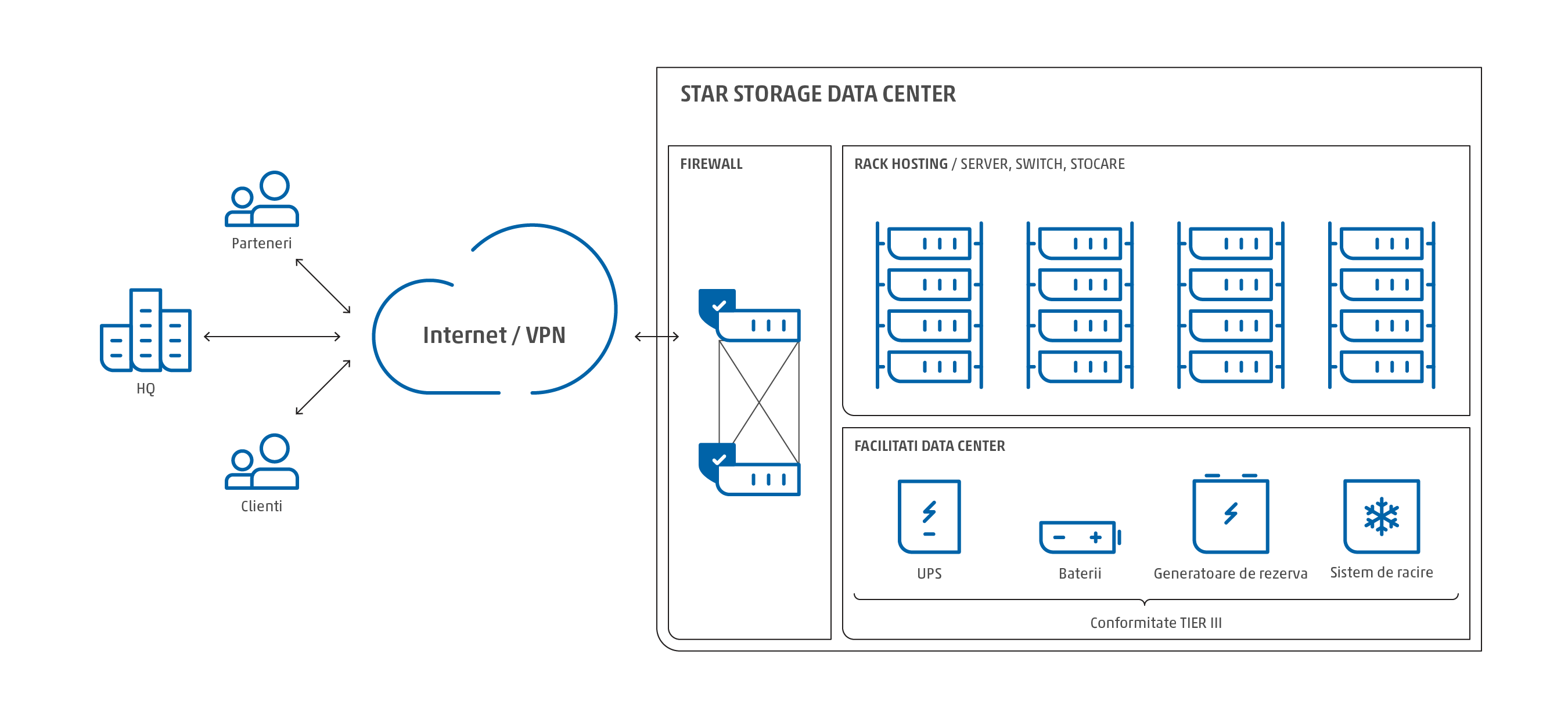 • Disponibilitate ridicata - (minim 99.982%) garantata financiar & asistenta tehnica 24/7